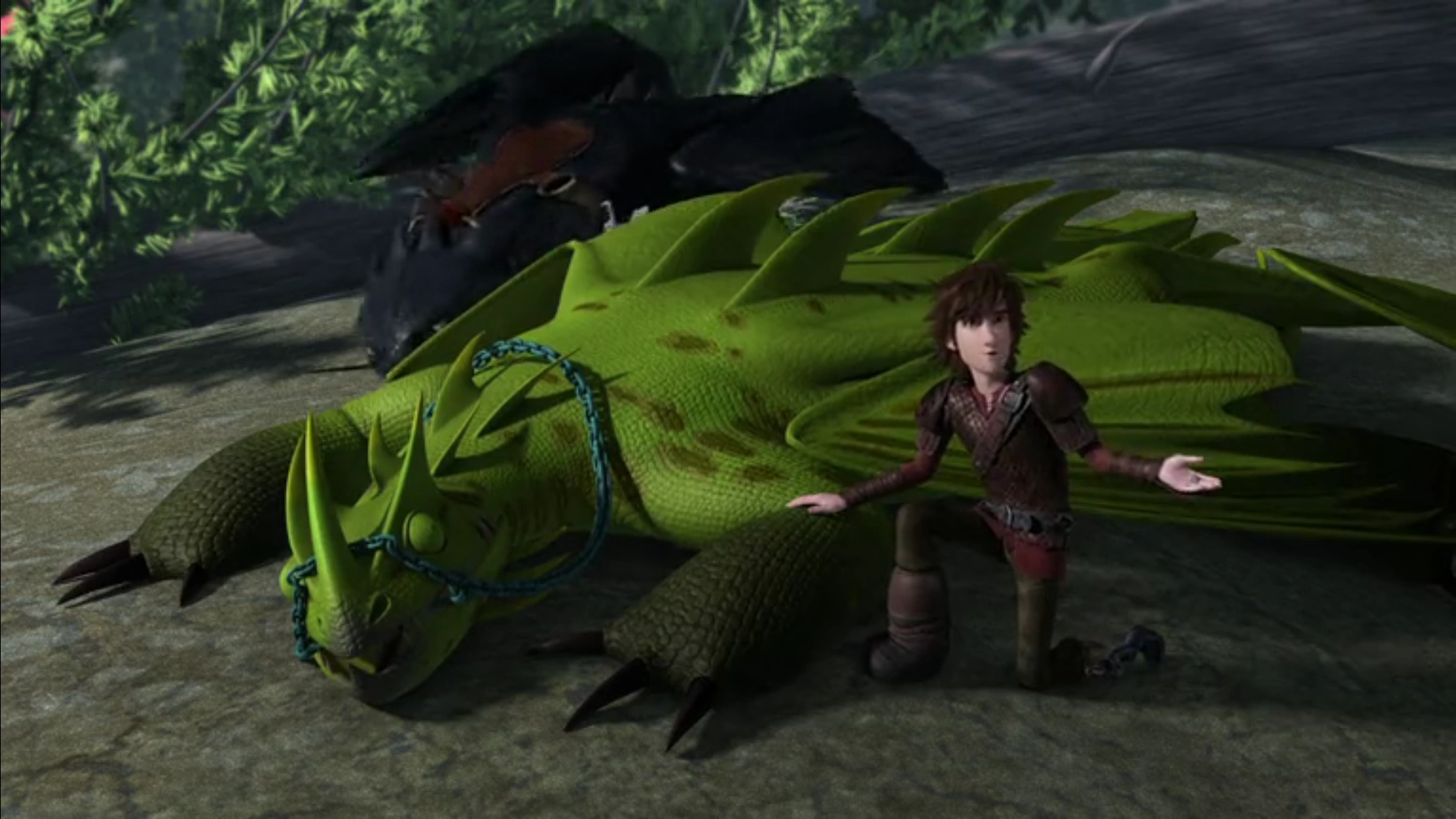 Um mehr über die Feuerschweife zu lernen und die Drachenflieger besiegen zu können, machen Hicks und Ohnezahn sich auf zur Lagerhausinsel. Sie stoßen nach kurzer Zeit auch auf einen der Drachen. Nachdem er etwas beobachtet wurde, versuchte Hicks ihn zu zähmen. Dies gelingt ihm jedoch nicht und Ohnezahn greift den Feuerschweif an, wird so aber von Hicks getrennt. Der Feuerschweif macht daraufhin Jagd auf Hicks. Dieser wird aber unerwartet von Kotzbacke gerettet.