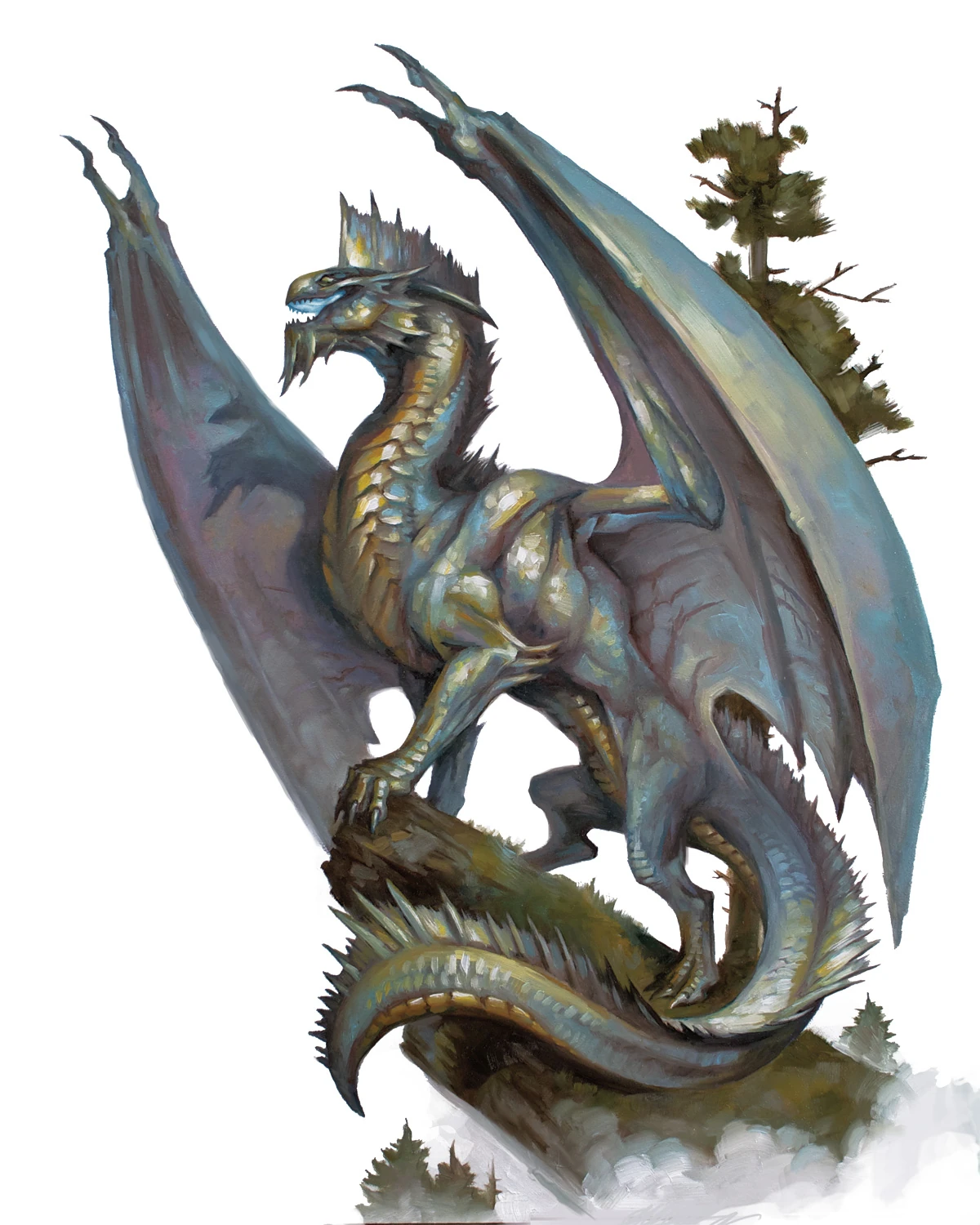 Silberdrachen sind Eisdrachen, die in kalten Bergregionen leben. Sie nutzen Magie und ihre Atemangriffe, Eisatem und Paralysegas, um Kämpfen aus dem Weg zu gehen. Oft verstecken sie sich auch in Wolken.